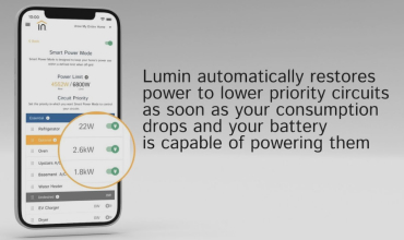 Lumin's Smart Power Mode helps extend the runtime of a home's backup battery during a grid outage and prevents the energy storage system from being overloaded.